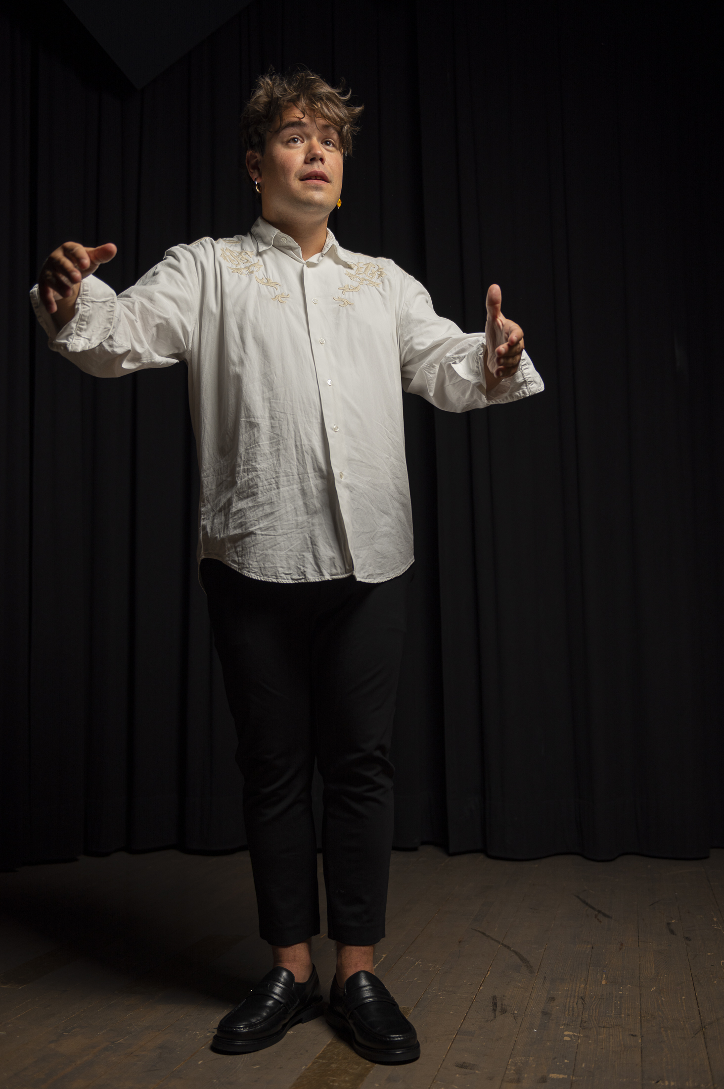 Benjamin Graf ist Chorleiter und Theologe. Als Kirchenmusiker arbeitet er seit 2017 in verschiedenen Kontexten in und um Zpürich. 2022 folgte mit ANSWERING Bach eine erste szenisch-musikalische Arbeit, in der sein ensemble bach embodied die Bachkantate BWV 75 durch eine szenische Erweiterung mit Schauspieler:innen ergänzt und kontextualisiert aufführte. Er ist Teil der Band Traute Fiebrich, die mit dem Programm Kra an einem Konzeptalbum auf der Schnittstelle zwischen Folk, Rap und Spoken Word arbeitet, das 2026 in einer Hörstück–Produktion erscheint. Als künstlerischer Assistent im renommierten Schweizer Jugendchor unter der Leitung von Nicolas Fink und Gründer und Leiter des queerchor schweiz arbeitet er aktuell mit unterschiedlichsten Chören zusammen. Darüber hinaus ist er Leiter des Kulturbereichs im Schenkhaus und studiert im Master Chorleitung an der ZHdK. Sein aktivistisches Engagement umfasste in der Vergangenheit die Mitarbeit im queeren Gottesdienstkollektiv queerumvier und im Dragkollektiv Das Sündikat.