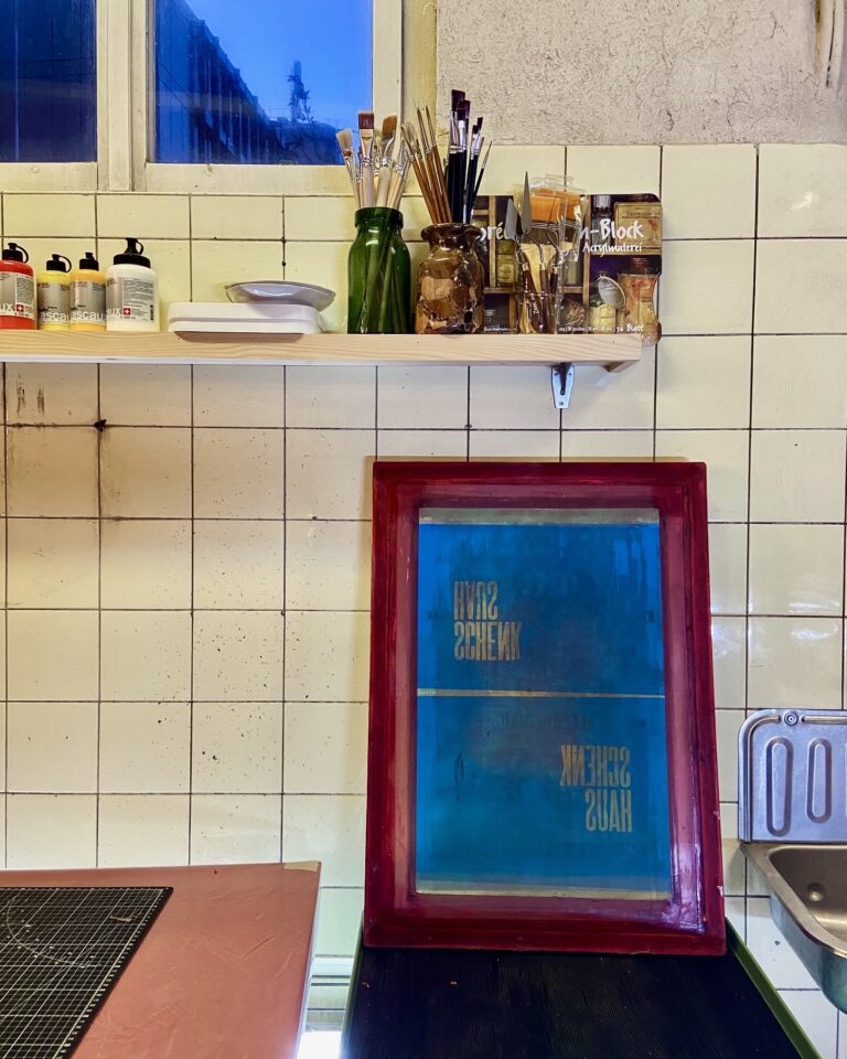Wir öffnen das vielfältige Atelier im Schenkhaus für eine Residency, weil uns Kunst wichtig ist und wir ihr mehr Raum schaffen wollen. Ausserdem haben wir dieses wunderschöne Atelier und möchten es mit Menschen teilen, die es gerne brauchen würden. Deshalb kann eine Einzelperson oder ein kleines Kollektiv von bis zu drei Personen zwischen März und Juni 2026 das Atelier nutzen, um ein künstlerisches Projekt zu vertiefen, künstlerisch zu forschen oder eine neue Werkserie zu entwickeln.
